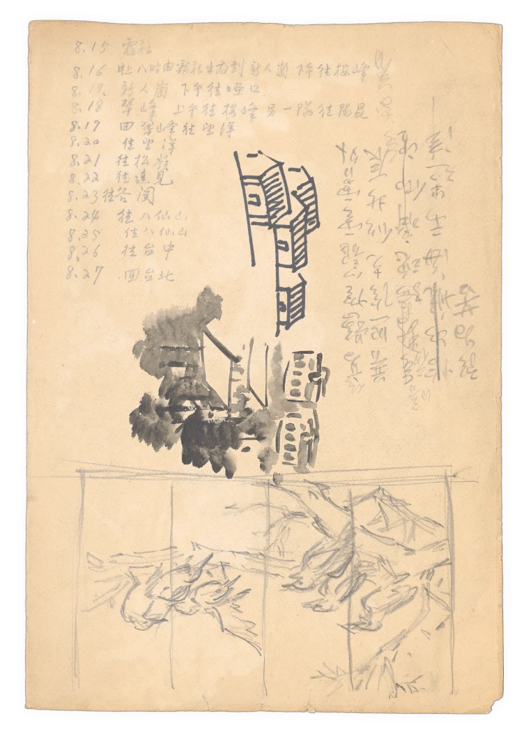 林玉山臺灣寫生地圖與足跡主要分成「臺灣寫生地圖」與「臺灣寫生足跡」兩個部分呈現,「臺灣寫生地圖」是根據其寫生稿內容分成地點風景、離島、山岳、海岸、泉溪河瀑布等五大主題,本次展覽透過資料視覺化方式呈現林玉山在臺灣駐足之寫生地點之外,更提供Google實景地圖作為參照,觀察寫生景點今昔之差異,且在操作同時,能即時聆聽「臺灣聲景協會」錄製之臺灣島嶼聲音,滿足視、聽覺之感受;「臺灣寫生足跡」則是以林玉山寫生稿行程記錄〈橫貫公路行程表〉為代表路線,跟隨文字紀錄及寫生稿之引導,一步步走訪、體驗其寫生足跡。